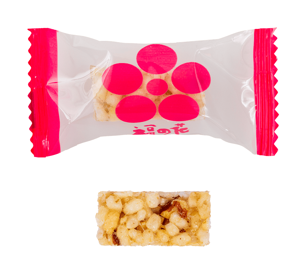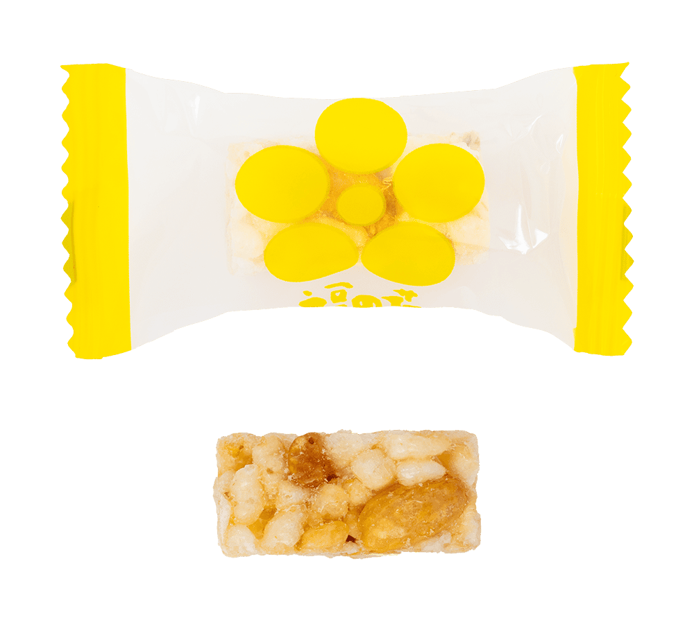 - ピーナッツ(紫色)、バニラ風味(黄色)、アーモンド(桃色)、黒糖しょうが(緑色)
